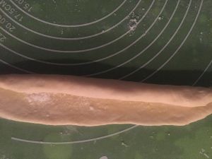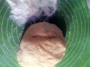 取出面团感觉手粘就在案板上撒粉,再次给面团松弛10分钟。