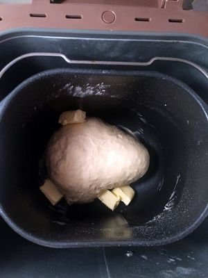 两次结束后,放入软化好的黄油,再和一次面15分钟。