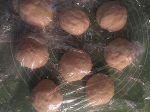 然后把面团分成8等份,每份约70g。盖上保鲜膜室温静置15分钟。