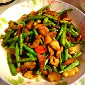 然后放入四季豆大火翻炒2分钟,豆角变绿后,加入适量酱油、盐然后继续翻炒一分钟后出锅。