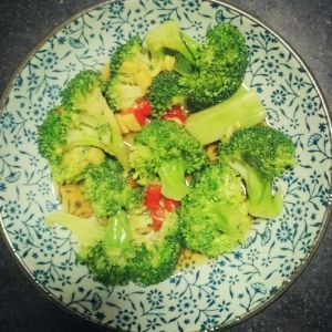 锅里热油,加入辣椒姜蒜爆香后划入西蓝花快炒!如不吃辣可以不要辣椒纯粹清炒!