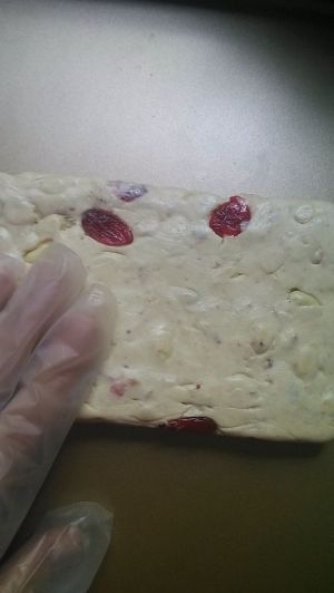 趁热转移到不沾烤盘之中,戴着手套快速整形