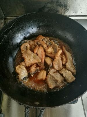 将滑熟的鱼块放入,烧五分钟,大火收汁,撒葱姜丝,出锅盛盘即可。
