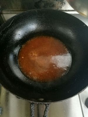 锅留底油煸蒜末加醋、糖、盐、水做一份荔枝口的汤汁;