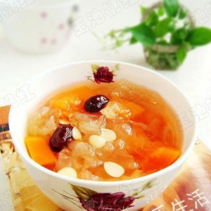 锅内加适量清水,加银耳、杏仁和红枣,大火煮开后转小火慢慢炖40分钟左右。