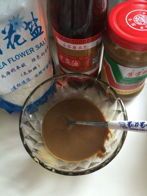 芝麻酱加香油拌匀,加盐调味备用