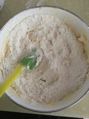 加入低粉,拌均,不可过拌,以免不容易出花纹。