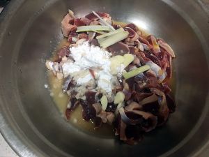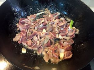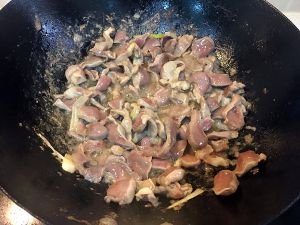 鸡胗切片 用淀粉 姜片 蒜 葱丝 腌制十分钟