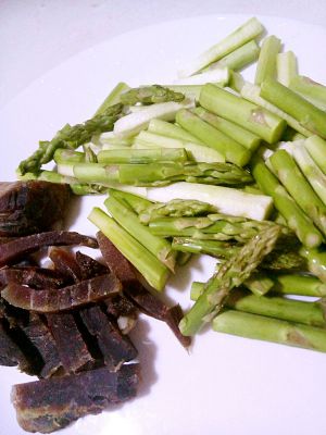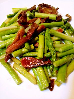 超级简单的好清淡的腊肉炒芦笋做法步骤