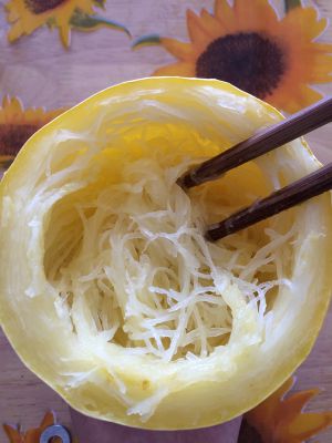 放凉用筷子顺时针搅拌直至瓜肉全部脱落