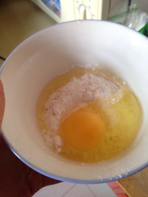 淀粉20克面粉50克加1个鸡蛋混合,再加一点点盐。