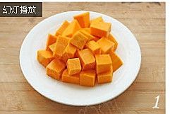 南瓜去皮切小丁;