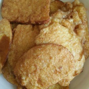 1.把馒头放入鸡蛋液里,两面抹匀。
