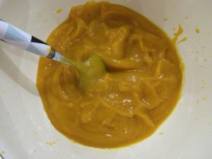 为了让南瓜泥细腻,我这里用料理机把南瓜泥打得更细