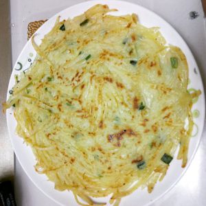 把面浆放进去,还有葱花、胡椒粉、盐、我喜欢吃孜然,所以还加了孜然