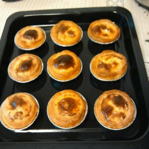 将过滤好的蛋挞水倒入蛋挞皮中,约八分满。烤箱需预热,220℃,上下火,烤25分钟左右