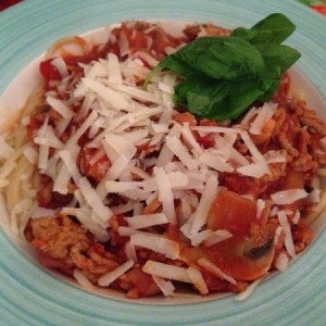 同时可以煮意大利面了。等意面煮好,就可以乘盘出锅啦!cook the spaghetti