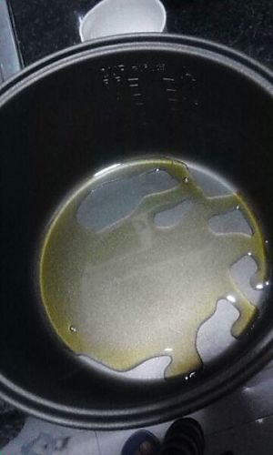 将电饭煲预热1分钟,拿出内胆抹油于锅底和周壁。