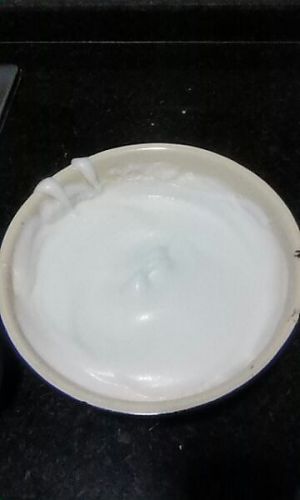 将蛋清打发成霜状。打发过程中分3次加入白砂糖,一次粗泡时,二次细泡时,三次起霜时,打至蛋清成固态不滴落。