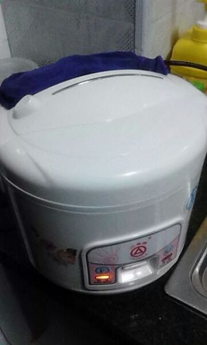 2分钟后,电饭煲跳至保温键,用毛巾盖住出气孔,焖20分钟。再按下煮饭键,当其跳成保温键后再焖20分钟,既好。