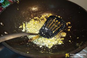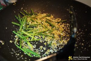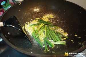 锅内放两勺油大火,放姜蒜蓉爆香。