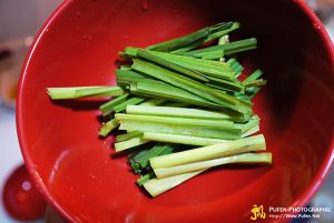 香茅洗干净甩干水,去头,把茎、叶切成两寸长的段,备用。