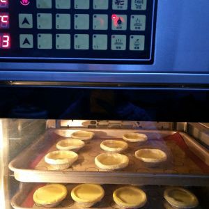 这个时候风炉也预热好了,170度烤25分钟,毎个人烤箱不同温度也不同,请根据自己烤箱温度适当加减时间或者温度,蛋挞表面金黄即可