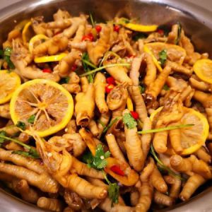 鸡爪洗净切两刀 去指甲(可以叫卖鸡爪的老板帮你切好) 凉水下锅 锅里放料酒跟五片姜片 煮五分钟 筷子扎一下轻松扎透就是熟了 捞起过凉水 直到鸡爪变凉 控干水分放在干净无油的容器里 把生抽陈醋一干调料放进去拌好 密封 过半个小时翻拌一次 6个小时以后就能吃了。