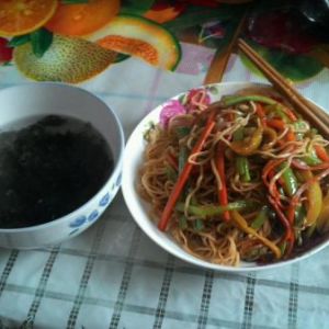 最后将炒面下锅,一遍翻炒,一遍用筷子搅拌!感觉差不多可以出锅了