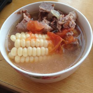 在排骨中放入适量清水将玉米西红柿倒入锅中,盖上锅盖,小火慢炖。二十分钟后就ok了!!