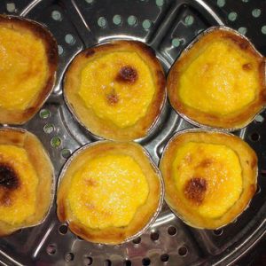 准备好后我们就可以把蛋挞液倒入蛋挞皮中!不要倒太满哦!