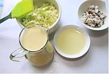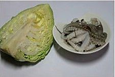 处理好小章鱼和高丽菜,高丽菜洗干净切碎即可,章鱼洗干净,切条,和几片姜片一同入水焯熟捞出,切碎