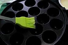 模具不需要非常热,70度左右即可,倒入面糊(为了拍照,我先示范5个)
