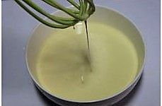 低粉,澄粉,泡打粉,粉类拌匀,全部材料混合,过筛一次,全部面糊材料混合拌均匀,水最后的要慢慢加,以防面糊过稀,拿起蛋抽能自由轻易落下,像蜂蜜流动的状态,放置1小时后可