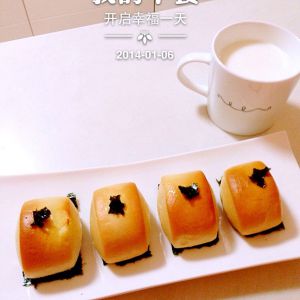 将黄油片放在馒头上。放在铺了锡纸的烤盘上,放入预热好的烤箱中层,200度,上下火烤约10分钟至黄油融化表面金黄。