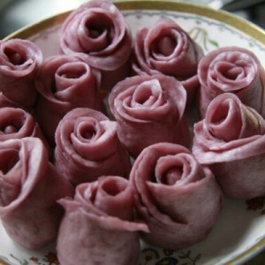 将其余5个小剂子按扁,擀成厚约0.3CM,直径7CM的圆片,圆片的边最好擀