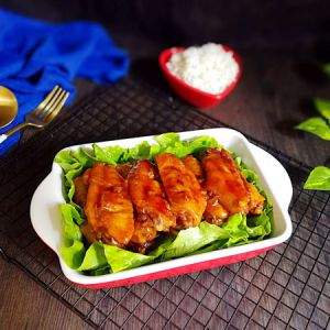 不粘锅放适量油,不要太多因为煎的过程中鸡皮会有油出来,下鸡翅中小火慢煎。