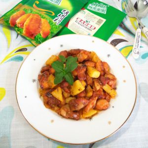 做法1,先腌制肉,然后土豆和鸡块炒锅一起翻炒