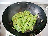 加入扁豆翻炒。