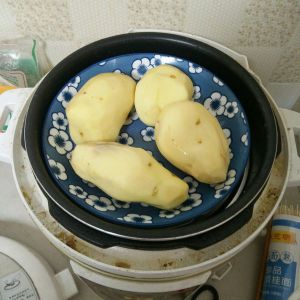 土豆削皮放入蒸锅里蒸半个小时左右取出