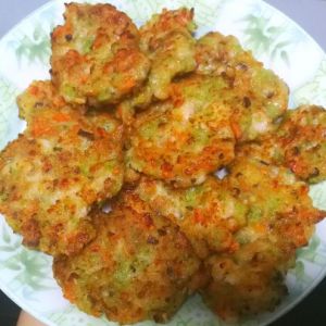 装盘,美味的虾饼就做好了。搭配一碗杂粮粥,营养充分,易消化易吸收。大家试试吧。