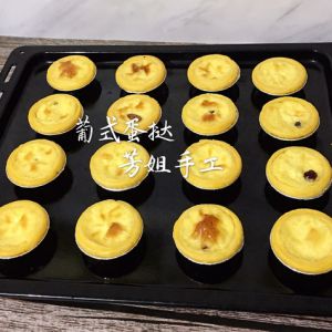 倒入蛋挞皮8分满,加入自己喜欢的果干