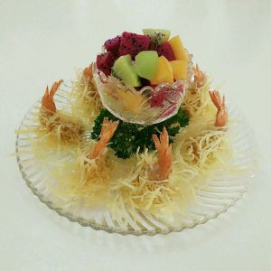 把香蕉和沙拉酱在料理机里打成香蕉湖,炸好的虾子裹上香蕉湖,然后放在土豆丝裹一下就完成了。