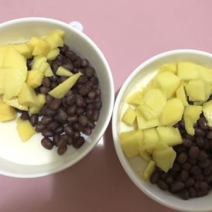 切点芒果,放点红豆在上面就可以吃啦。和外面味道一样。几十分钟就做好,炒鸡简单。