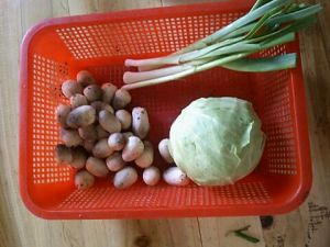 炒锅热油,加蒜末爆香,加鲜鱼炒至快熟加蒜苗,圆白菜炒