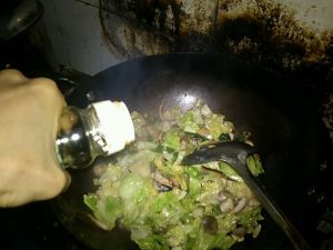 炒至快熟时加盐,鸡精,生抽适量翻炒匀熄火即可。