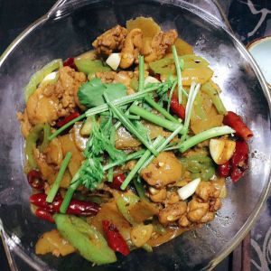 没有买到鸡,所以买了一包鸡腿,去骨头,只要鸡肉,嫌麻烦的可以直接把鸡腿剁开,油烧开放入花椒爆香,加入鸡腿,大火炒干鸡腿的水分