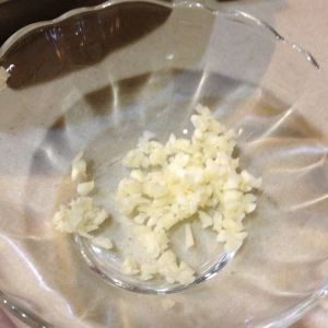 蒜剁细,加入半勺盐,2勺生抽,少许糖,2勺凉白开拌勺