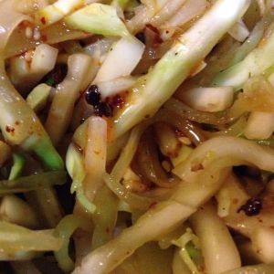 另一份双丝,加入白糖4勺,陈醋1勺,米醋3勺,盐1勺,拌匀,此为糖醋双丝。我这次加了香油,失败了。香油的香味发腻,与糖醋原有的清新极不搭