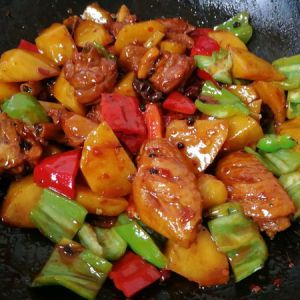 锅内放油放糖放花椒,小火翻动,待糖化掉之后,加入鸡块,再加两勺酱油或者生抽。